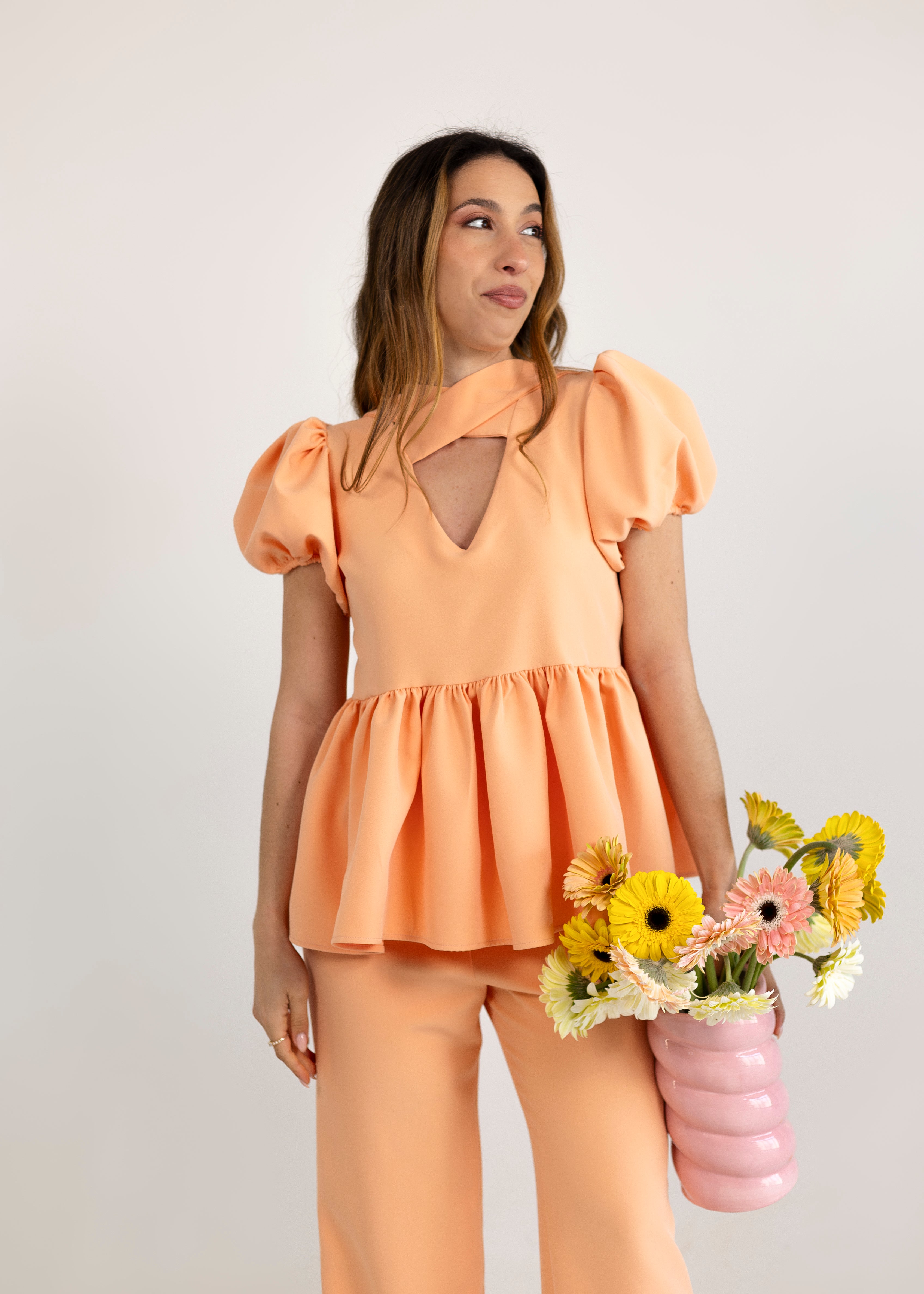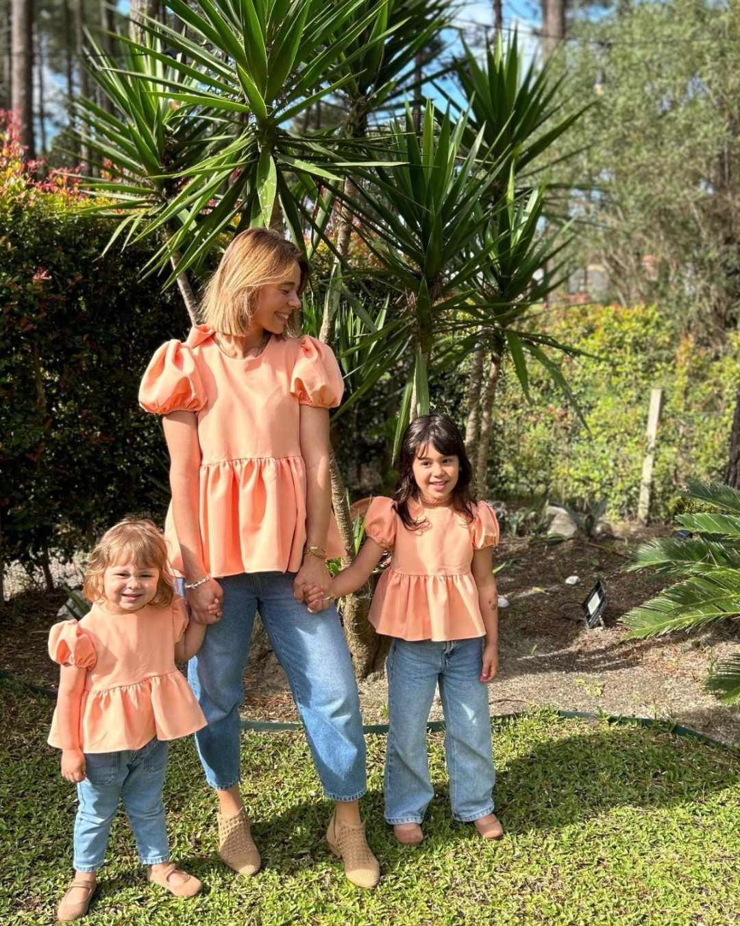 Our new blouse, inspired by the Trust Dress, has a V-neckline at the back that can be worn on the back or front, making breastfeeding even easier. Ribbons at the neckline to tie in a knot or bow.