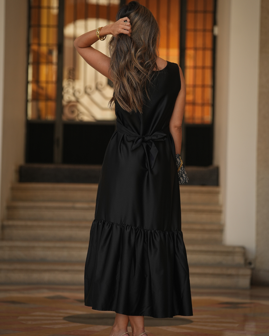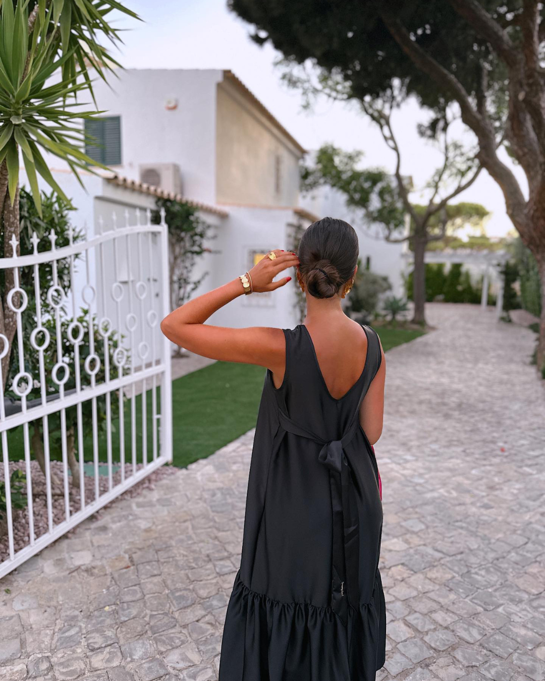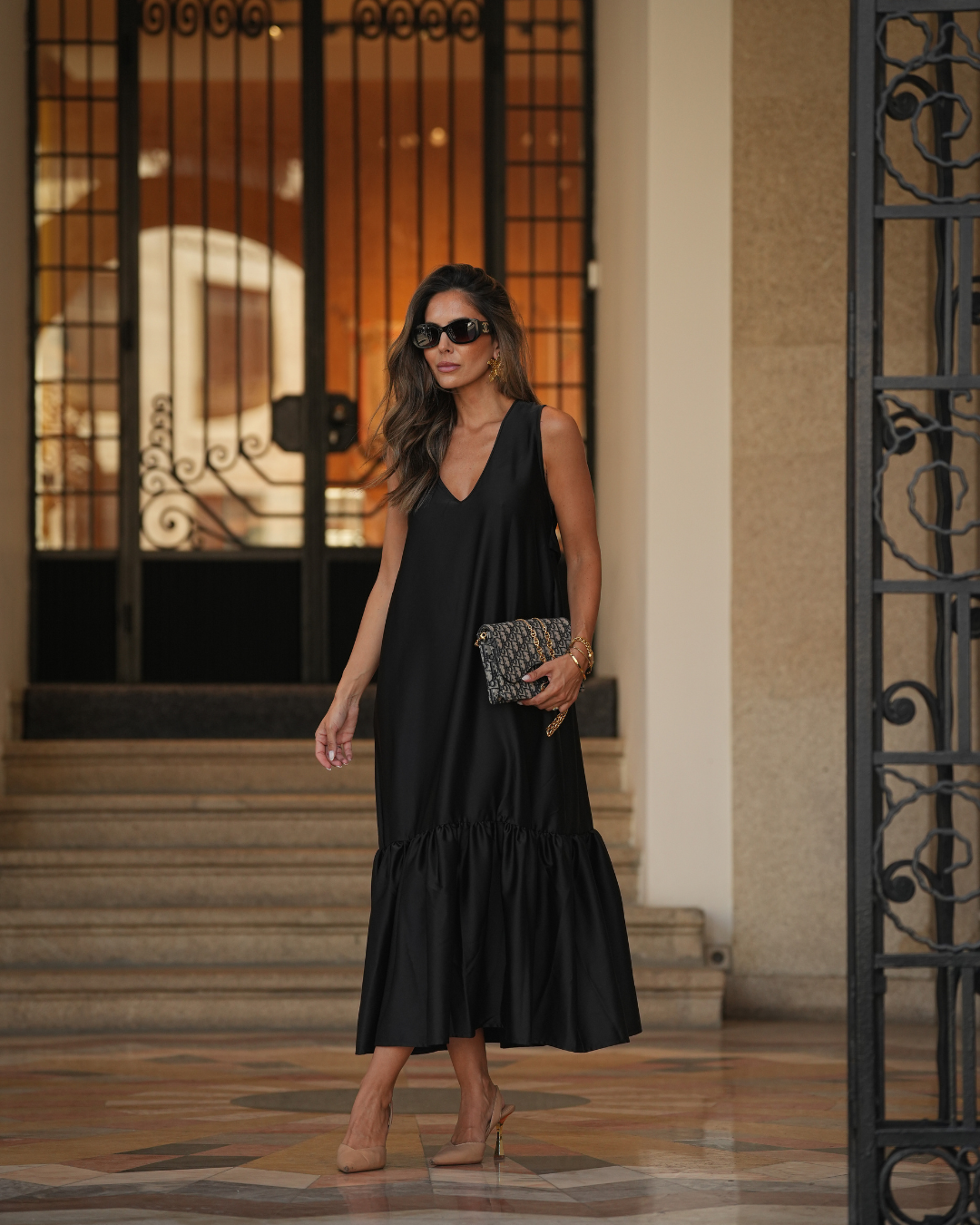 The dream dress that you can wear in 6 ways! A dress with a ruffle, a V-neckline at the back that you can also wear at the front, a belt that you can wear with a bow at the back, or a crossed one at the front, there are several ways you can wear it. The dress you can wear to a ceremony or to go out to dinner, just change your shoes and accessories and voila.