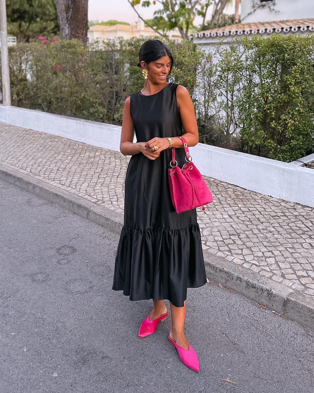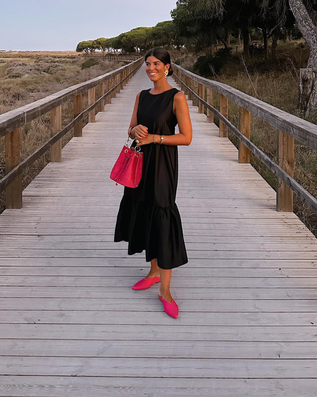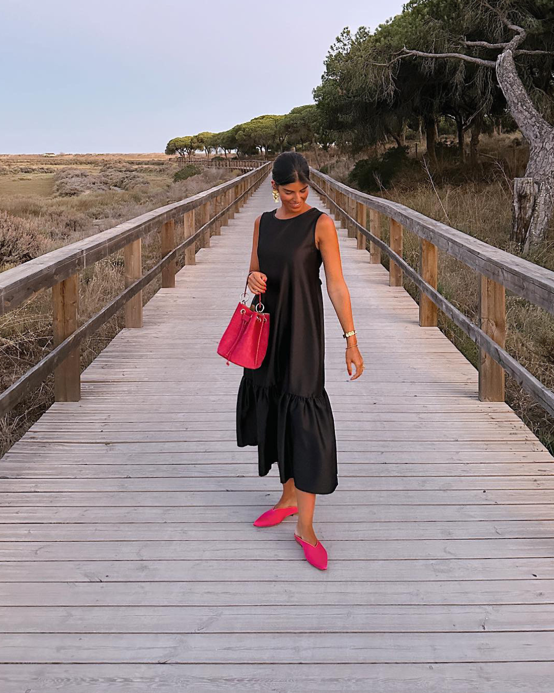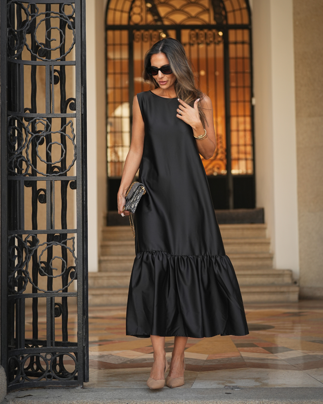 The dream dress that you can wear in 6 ways! A dress with a ruffle, a V-neckline at the back that you can also wear at the front, a belt that you can wear with a bow at the back, or a crossed one at the front, there are several ways you can wear it. The dress you can wear to a ceremony or to go out to dinner, just change your shoes and accessories and voila.