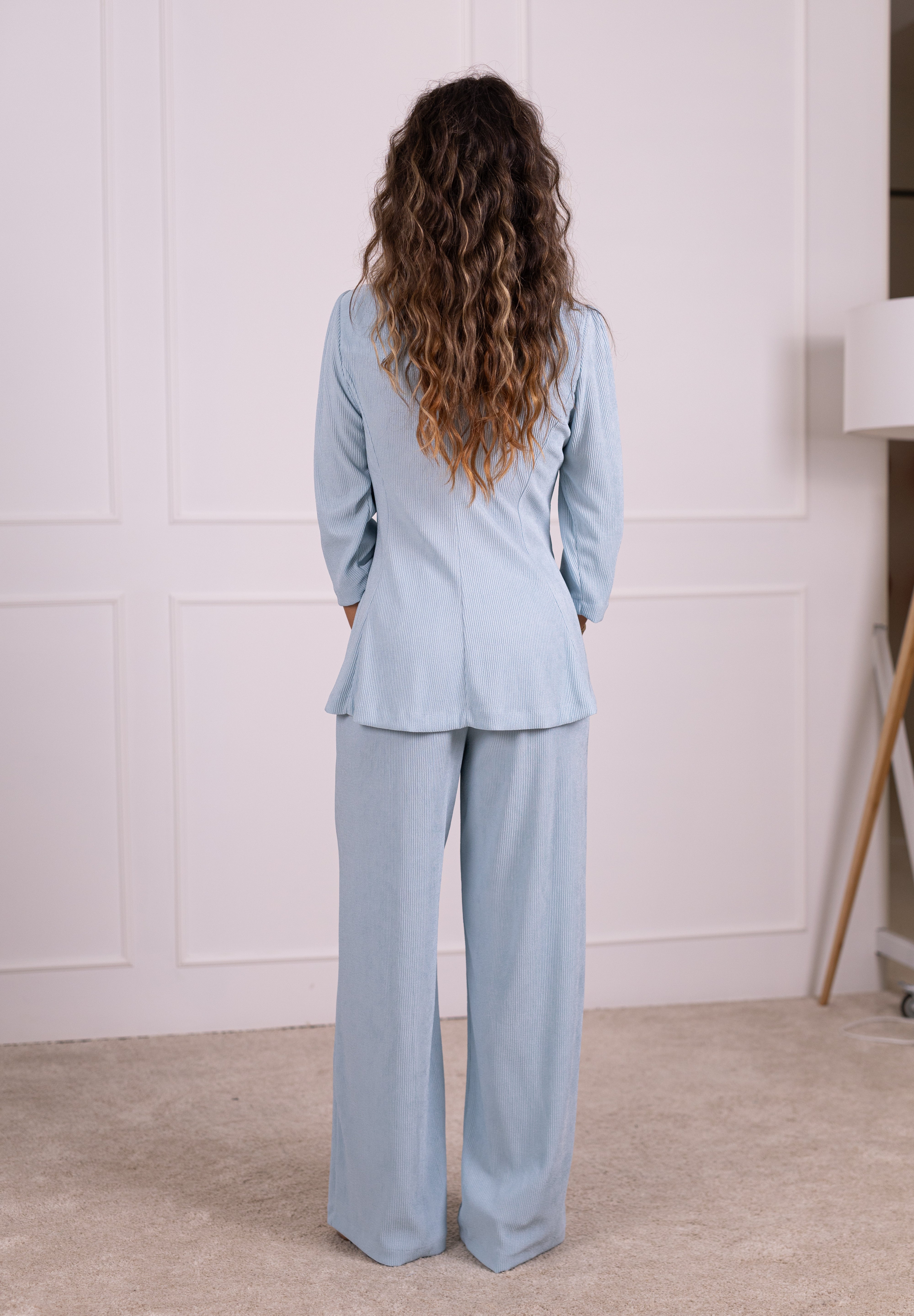A nossa blusa/casaco é confeccionada em tecido plissado com um subtil brilho, que lhe confere sofisticação e presença. Apresenta franzido nos ombros e efeito de pinças à frente e nas costas, criando estrutura e elegância no fitting.