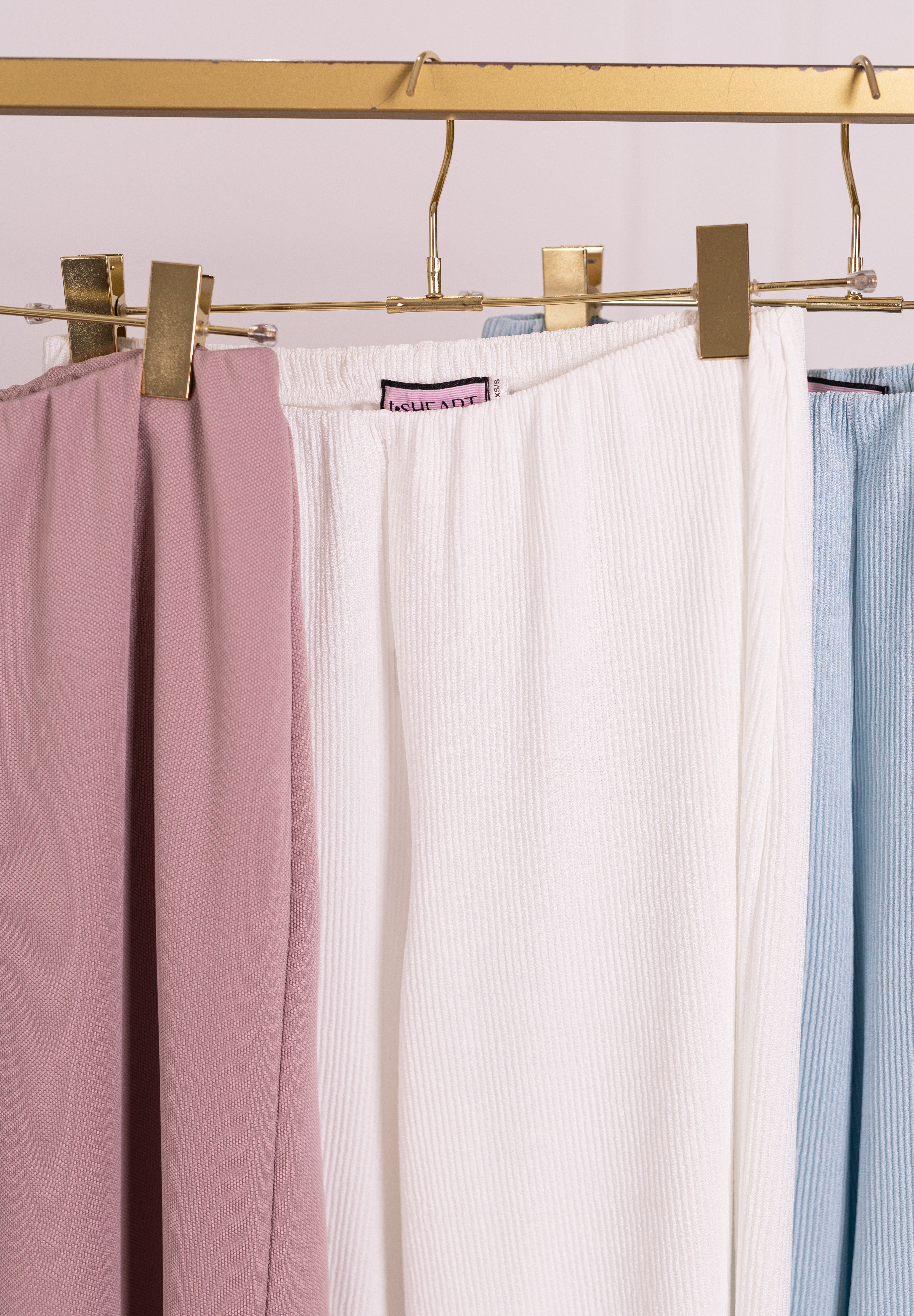 As nossas novas calças são confeccionadas em tecido plissado leve e solto, com um subtil brilho, que lhes confere sofisticação e leveza. De cintura subida, com elástico interior, adaptam-se confortavelmente a diferentes silhuetas, valorizando vários tipos de corpo. Para garantir a opacidade e o seu conforto, na cor branca as calças são forradas à cor.