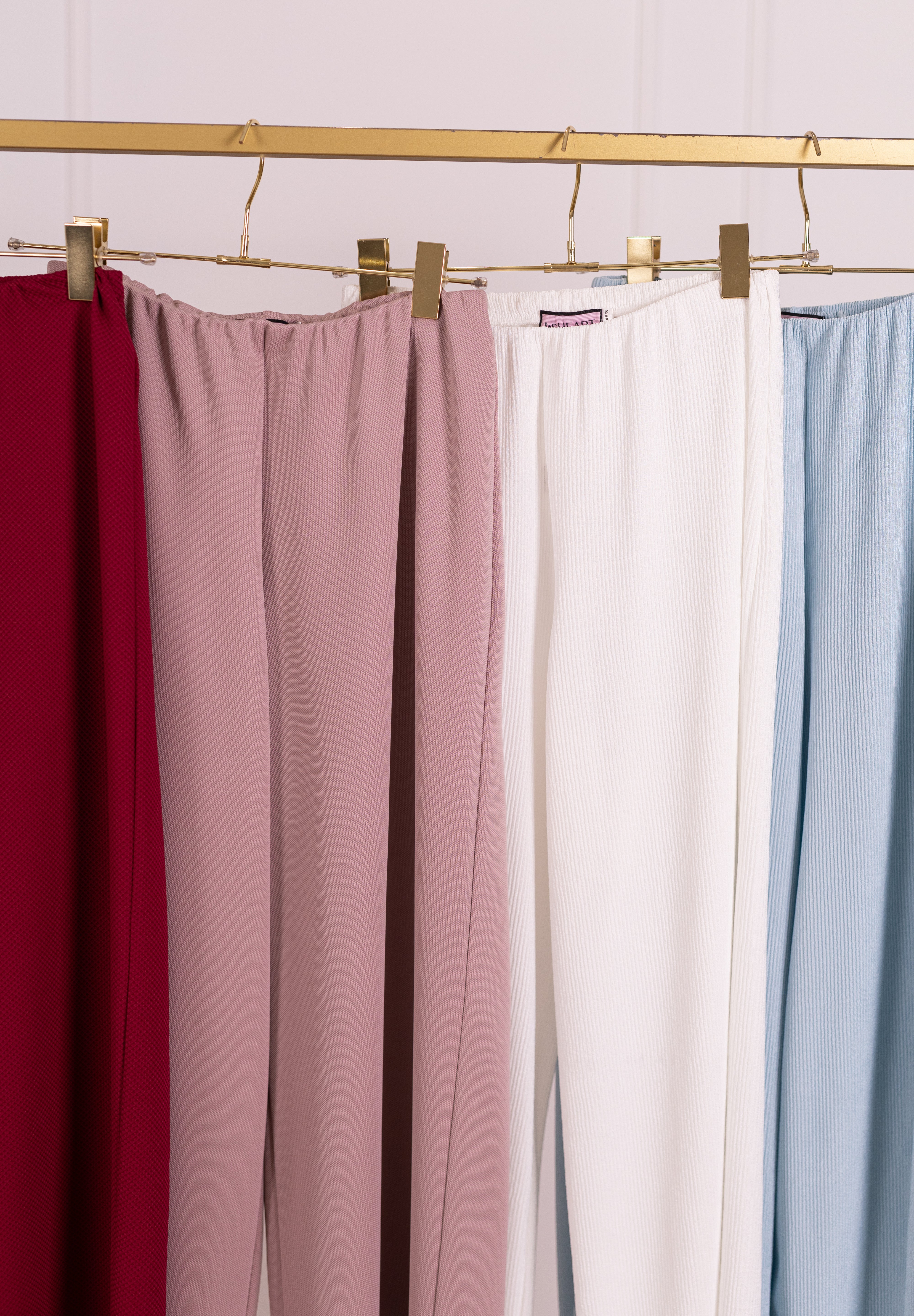 As nossas novas calças são confeccionadas em malha piquet, que lhes confere sofisticação e conforto. De cintura subida, com elástico interior, adaptam-se confortavelmente a diferentes silhuetas, valorizando vários tipos de corpo.