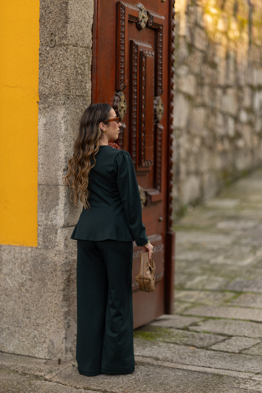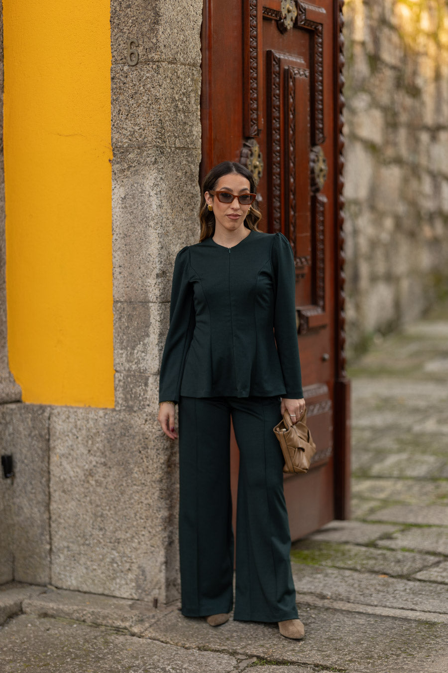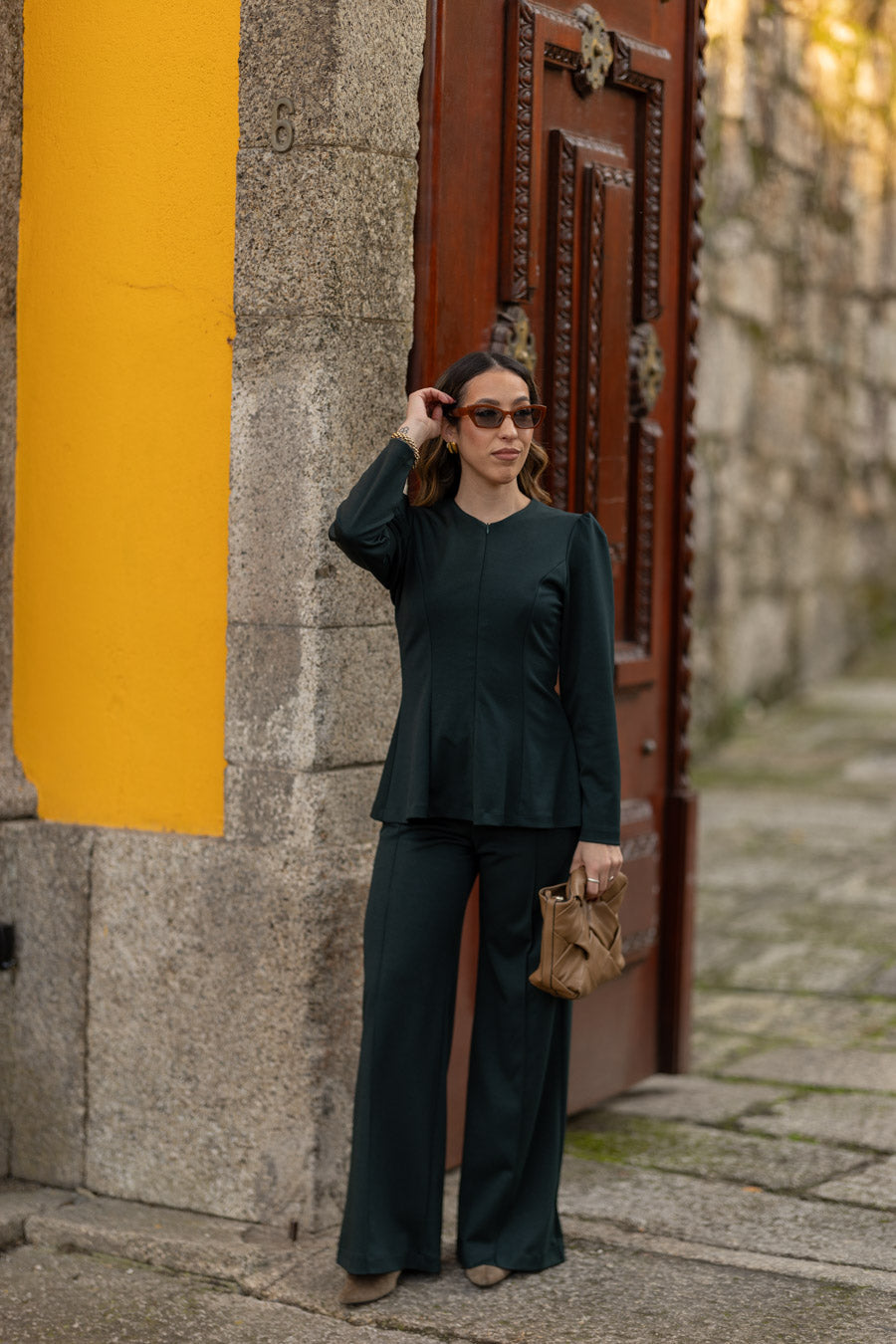 As nossas novas calças, em malha ponto roma, de cintura subida com elástico no interior, que permite vestir vários corpos. Com efeito nervurado no centro das calças que as transforma numas calças ainda mais distintas. Perfeitas para serem usadas num look mais elegante com saltos mas também num look mais sport/comfy com sapatilhas.