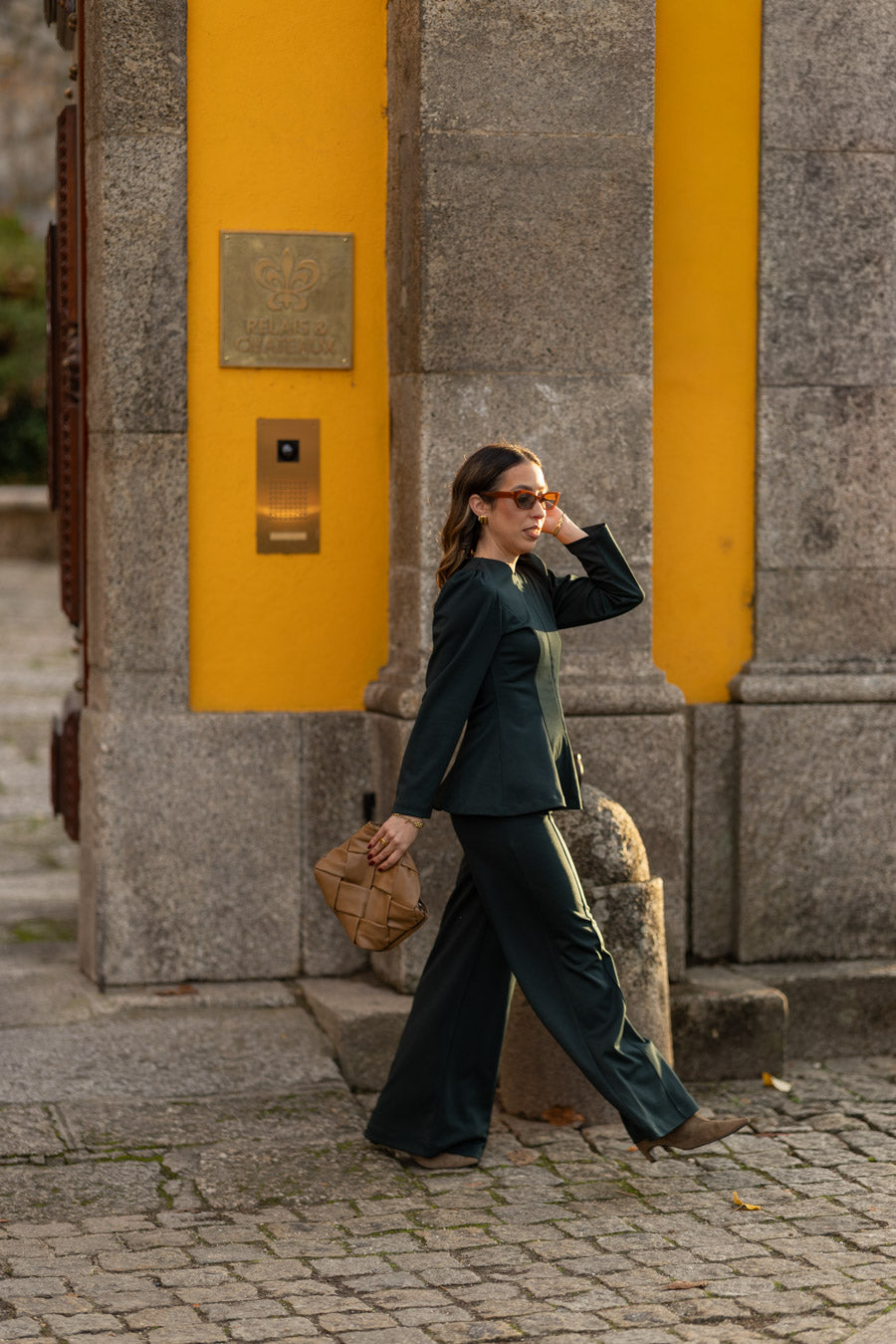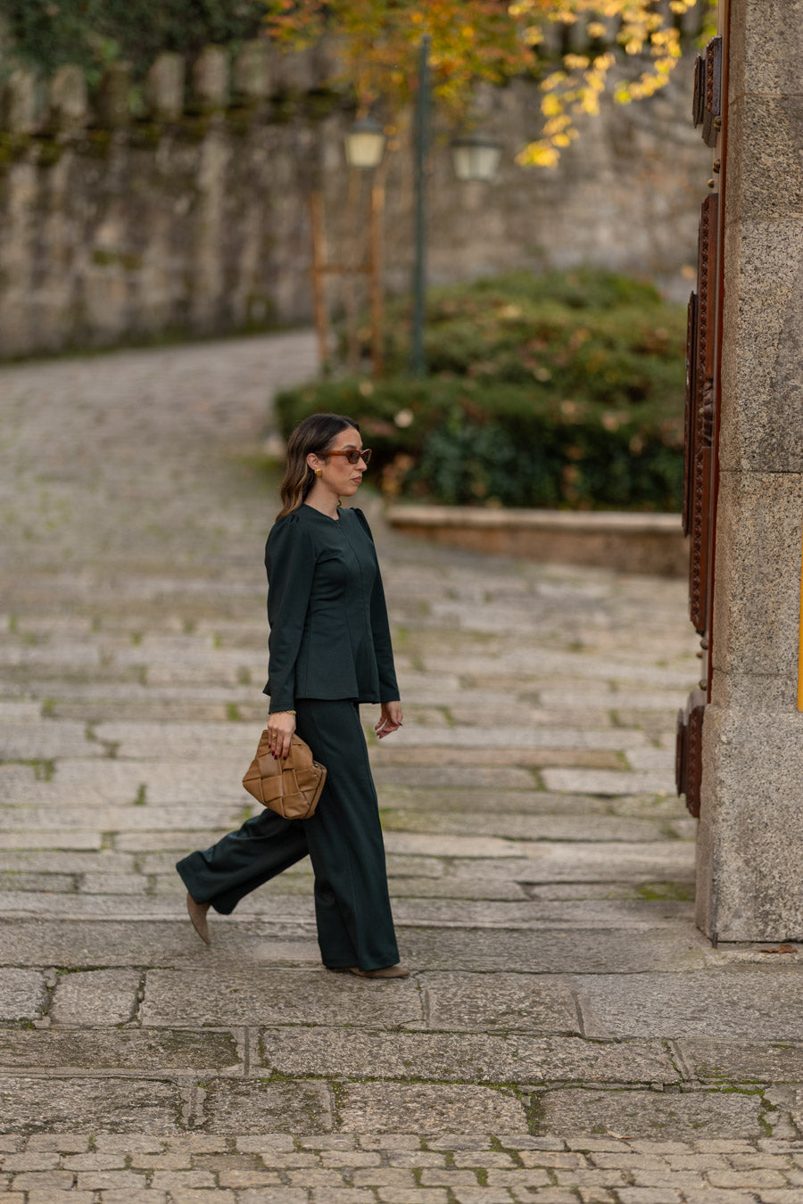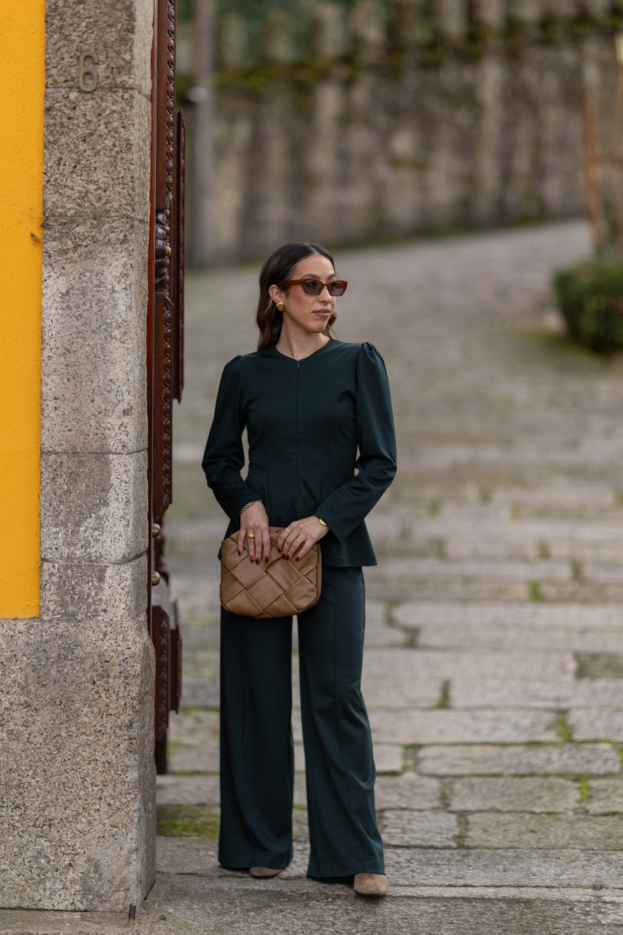 As nossas novas calças, em malha ponto roma, de cintura subida com elástico no interior, que permite vestir vários corpos. Com efeito nervurado no centro das calças que as transforma numas calças ainda mais distintas. Perfeitas para serem usadas num look mais elegante com saltos mas também num look mais sport/comfy com sapatilhas.