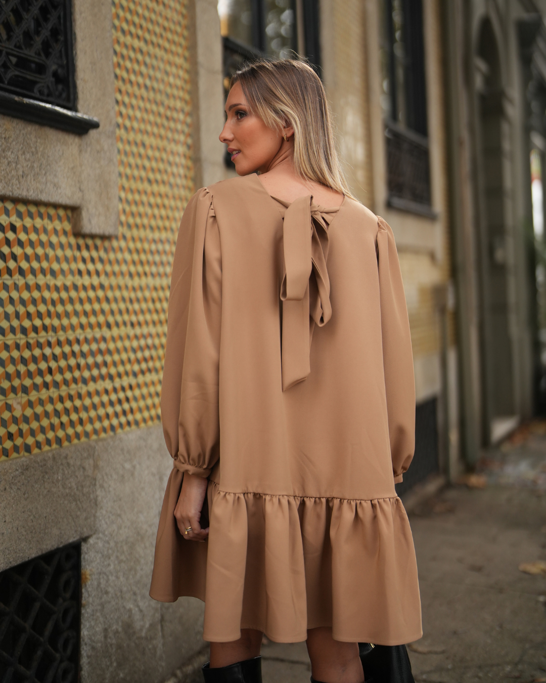 vestidocurtocamelfolhos