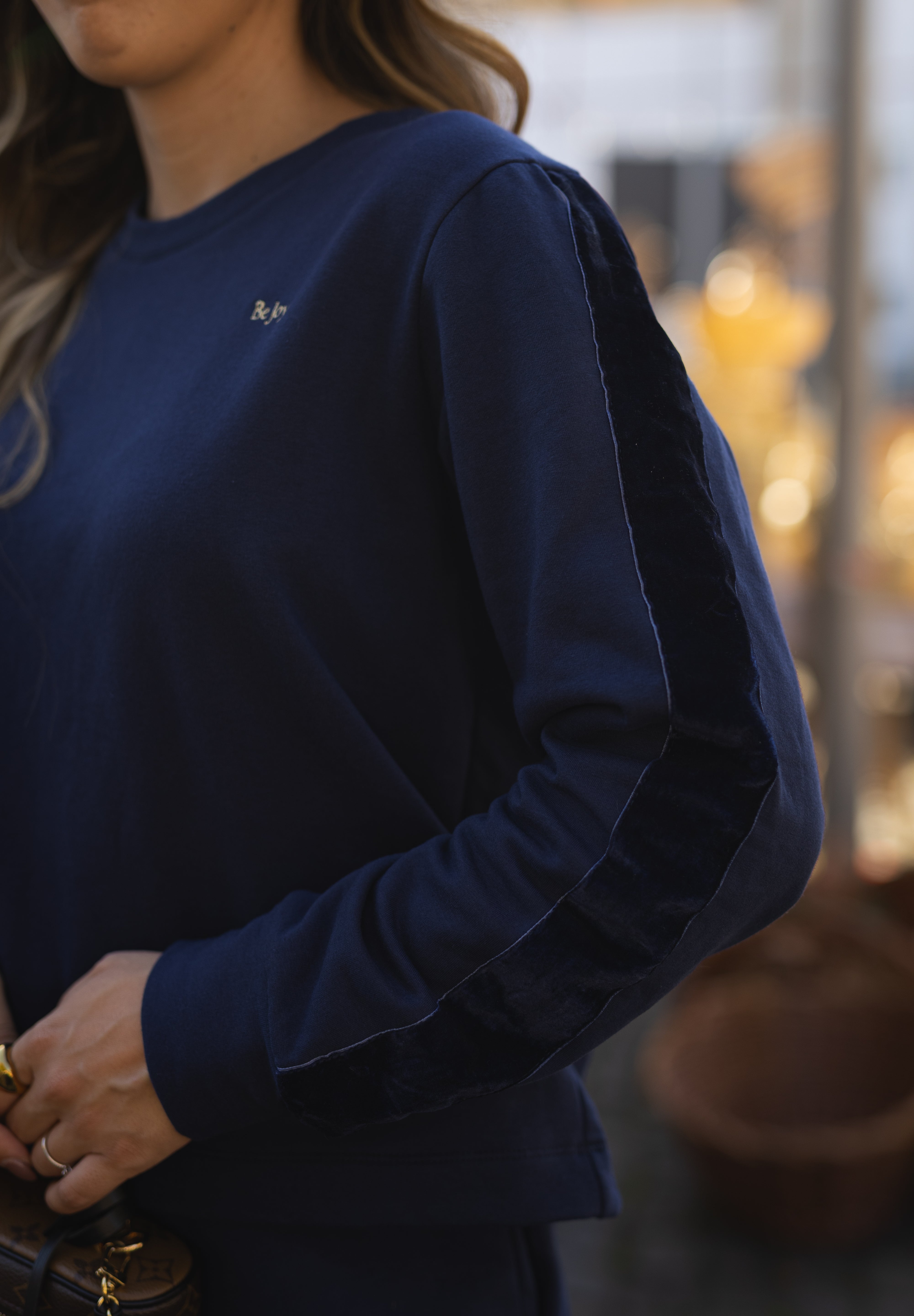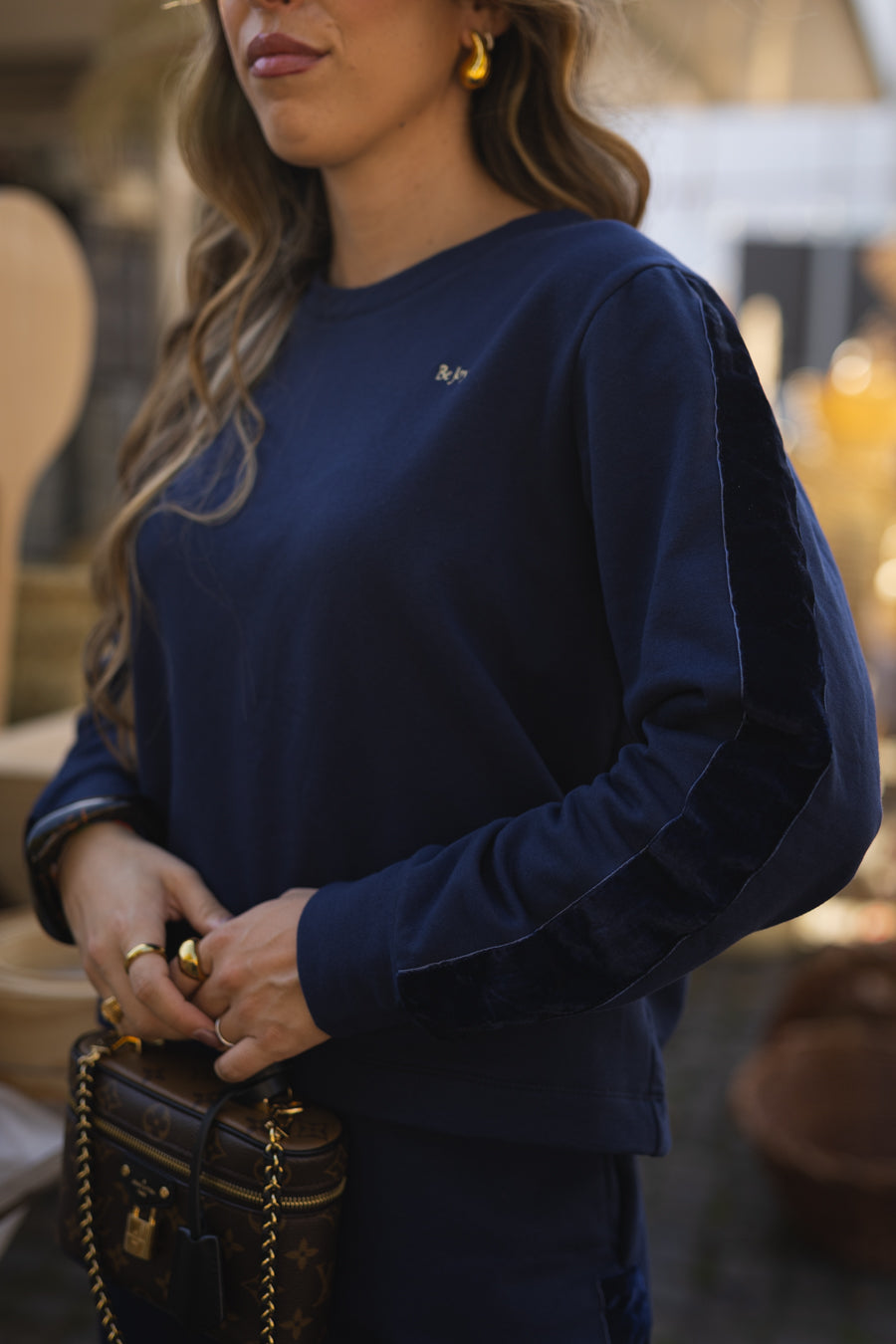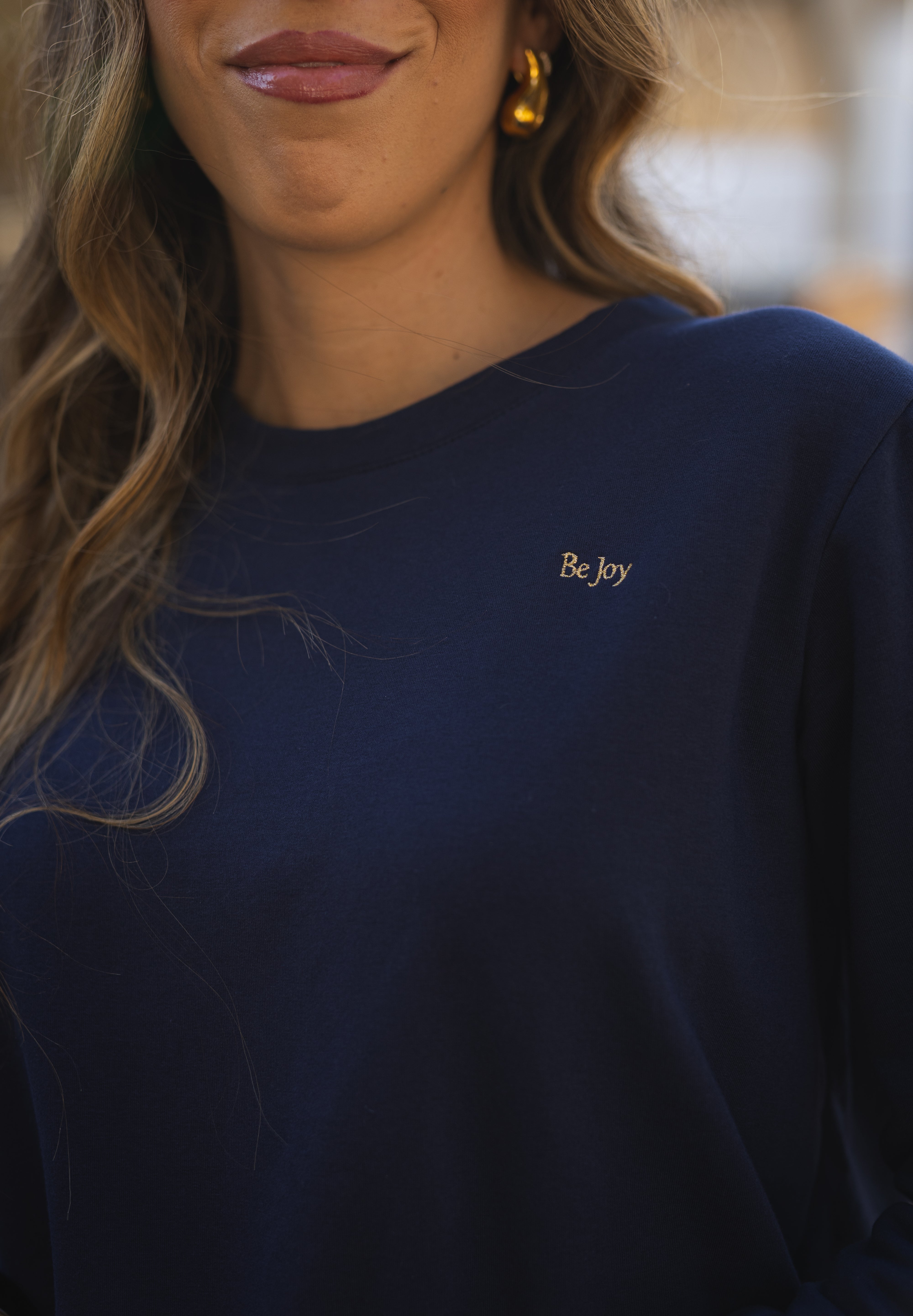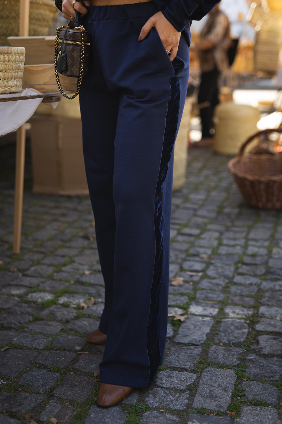 Be Joy Set is the new tracksuit/set that doesn't look like it.  Sweater with high cuffs, with white sequin ribbon detail on the sides of the sleeves, where you can be inspired by the embroidered statement Be Joy in white lurex thread.  Wide leg style straps, with pockets , high elastic waist, with white sequin ribbons on the sides . These 3 meters of sequin ribbon sewn all over the set give it greater glamour and difference.