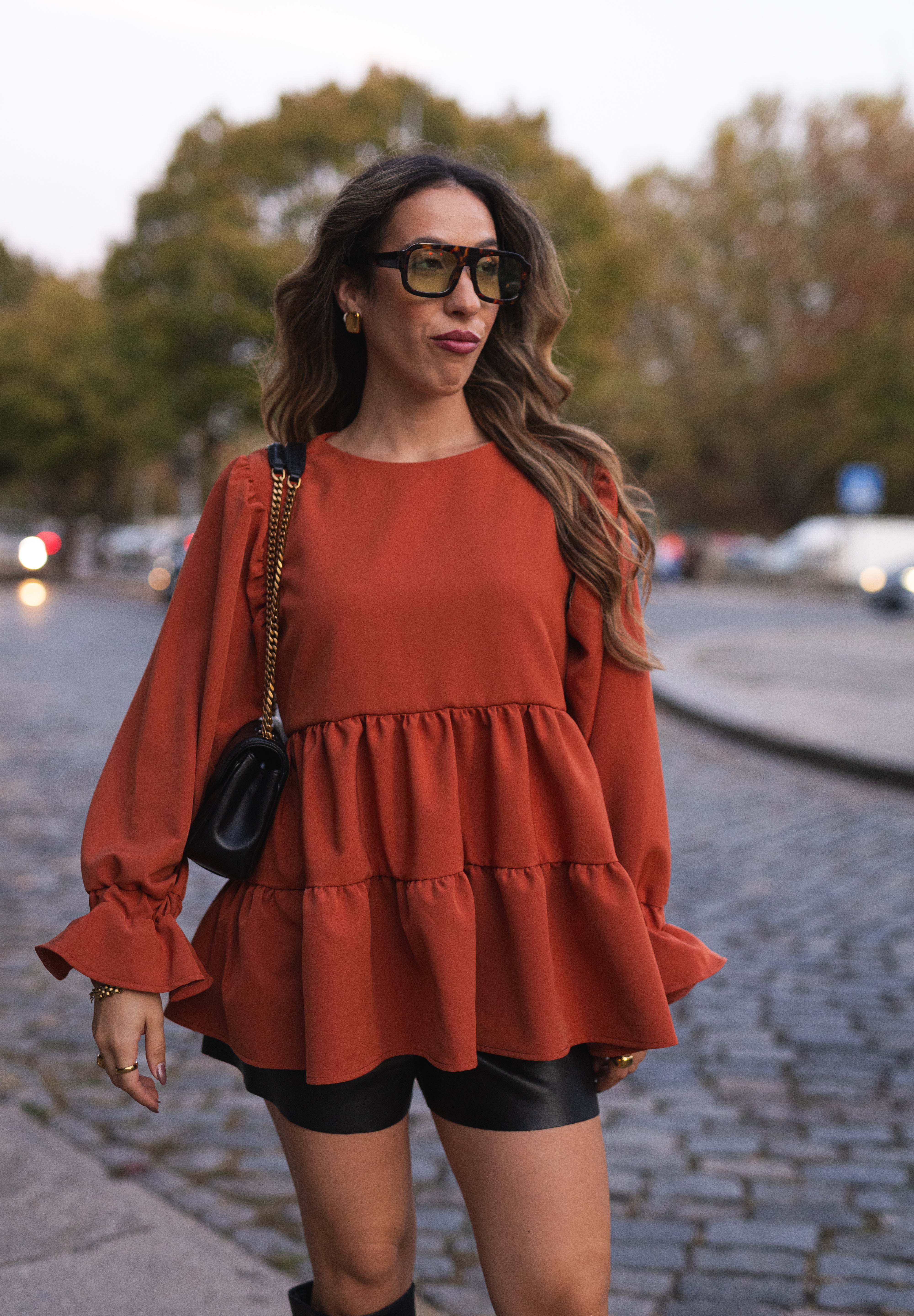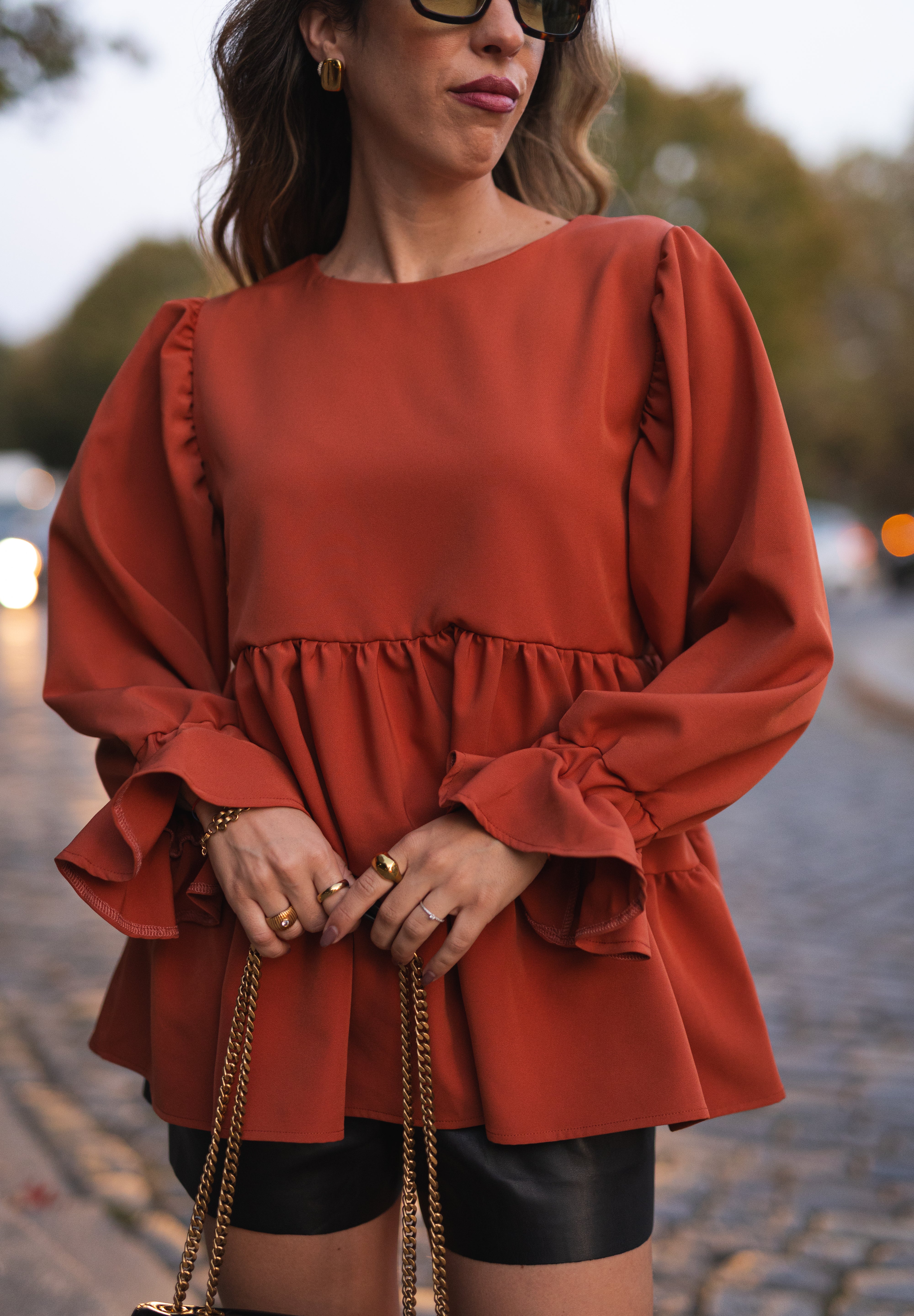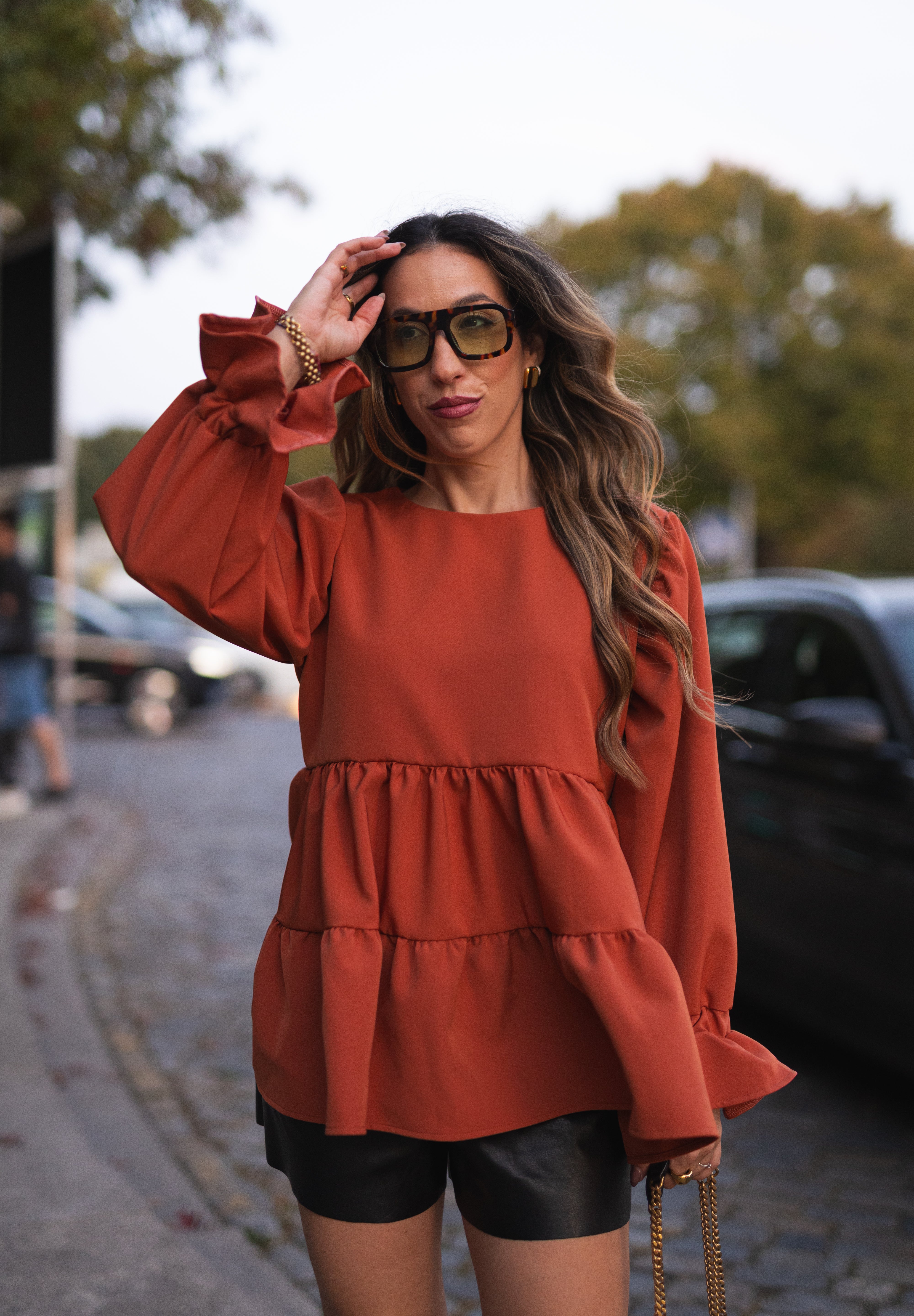 A blusa best-seller em folhos com mais de 2 metros de tecido está de volta e na cor clássica e atemporal. Decote redondo que aperta no cós com lágrima. Mangas abalonadas com punho franzido por elástico a terminar em folho, permitindo usar as mangas 3/4 ou compridas, concedendo-lhe uma versatilidade e intemporalidade únicas. Vai poder inspirar-se com a afirmação Be Love bordada em linha lurex dourada.