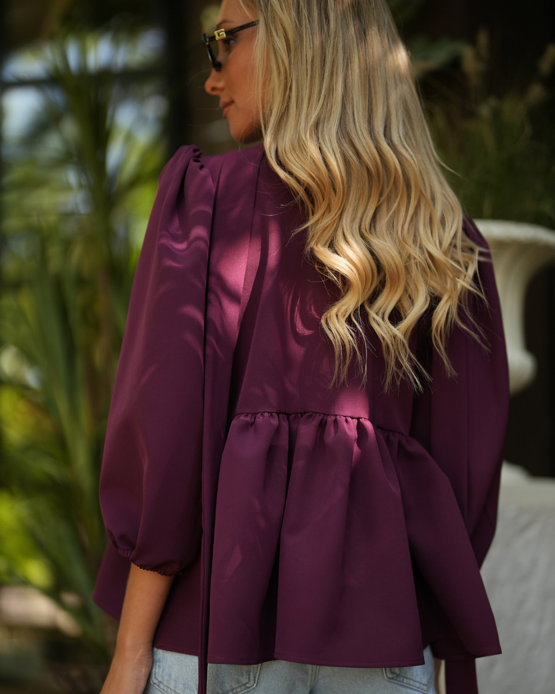 A nossa nova blusa agora na versão outono-inverno, com mangas 3/4, decote em bico nas costas que pode também ser usado nas costas ou na frente, de forma a que amamentar seja também ainda mais fácil. Fitas no decote para apertar em nó ou laço.