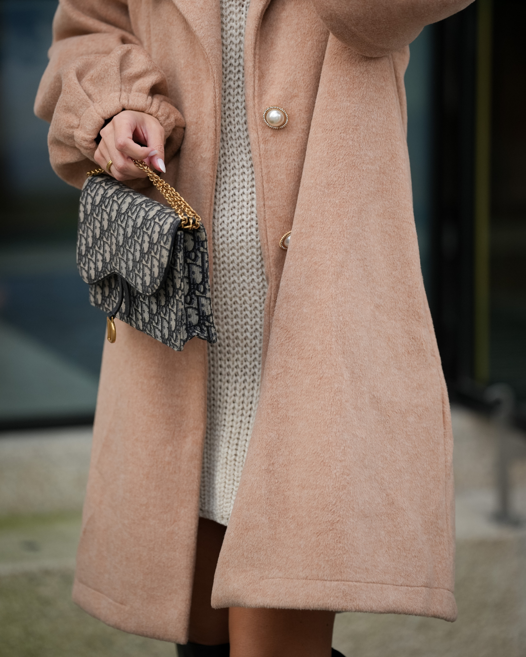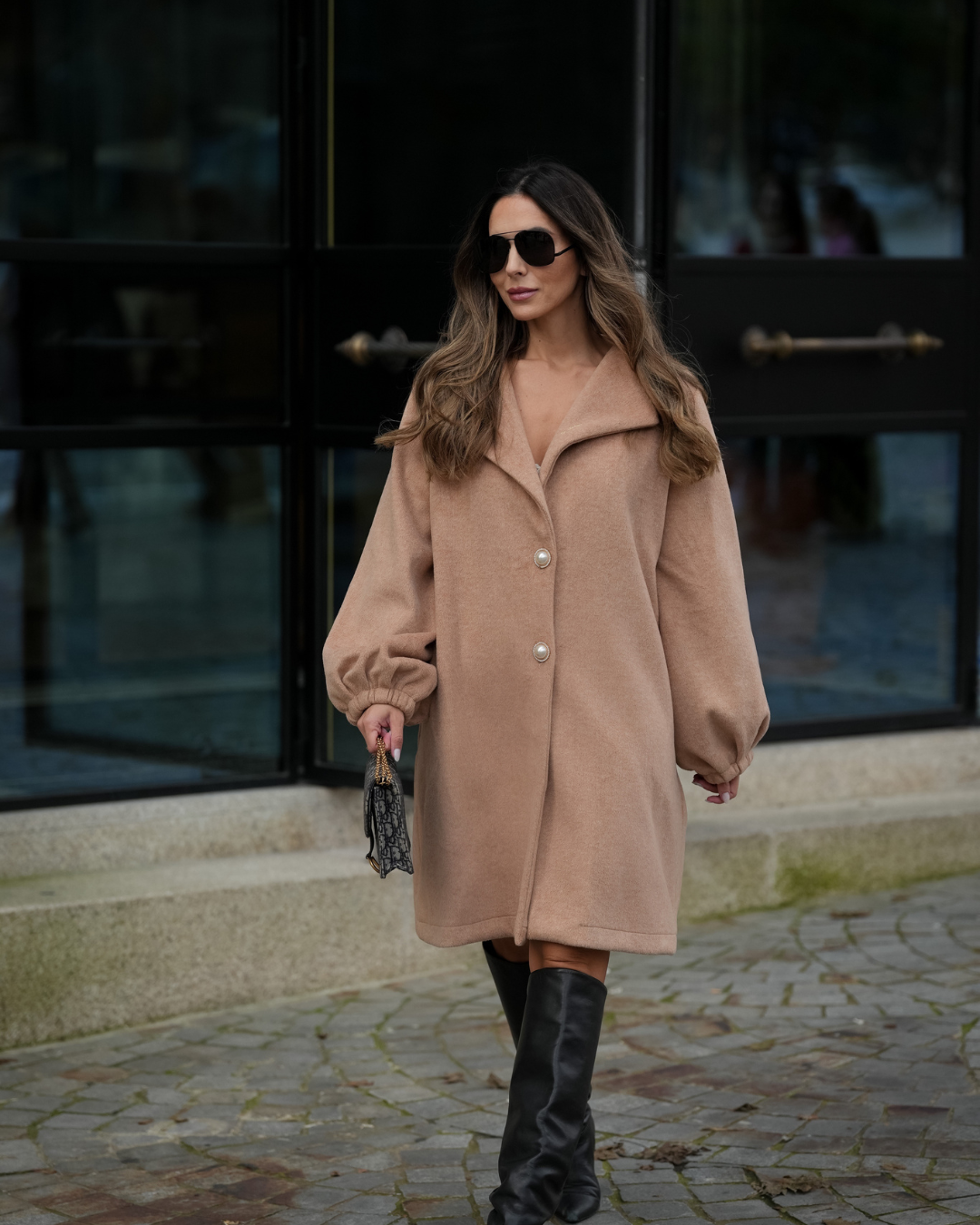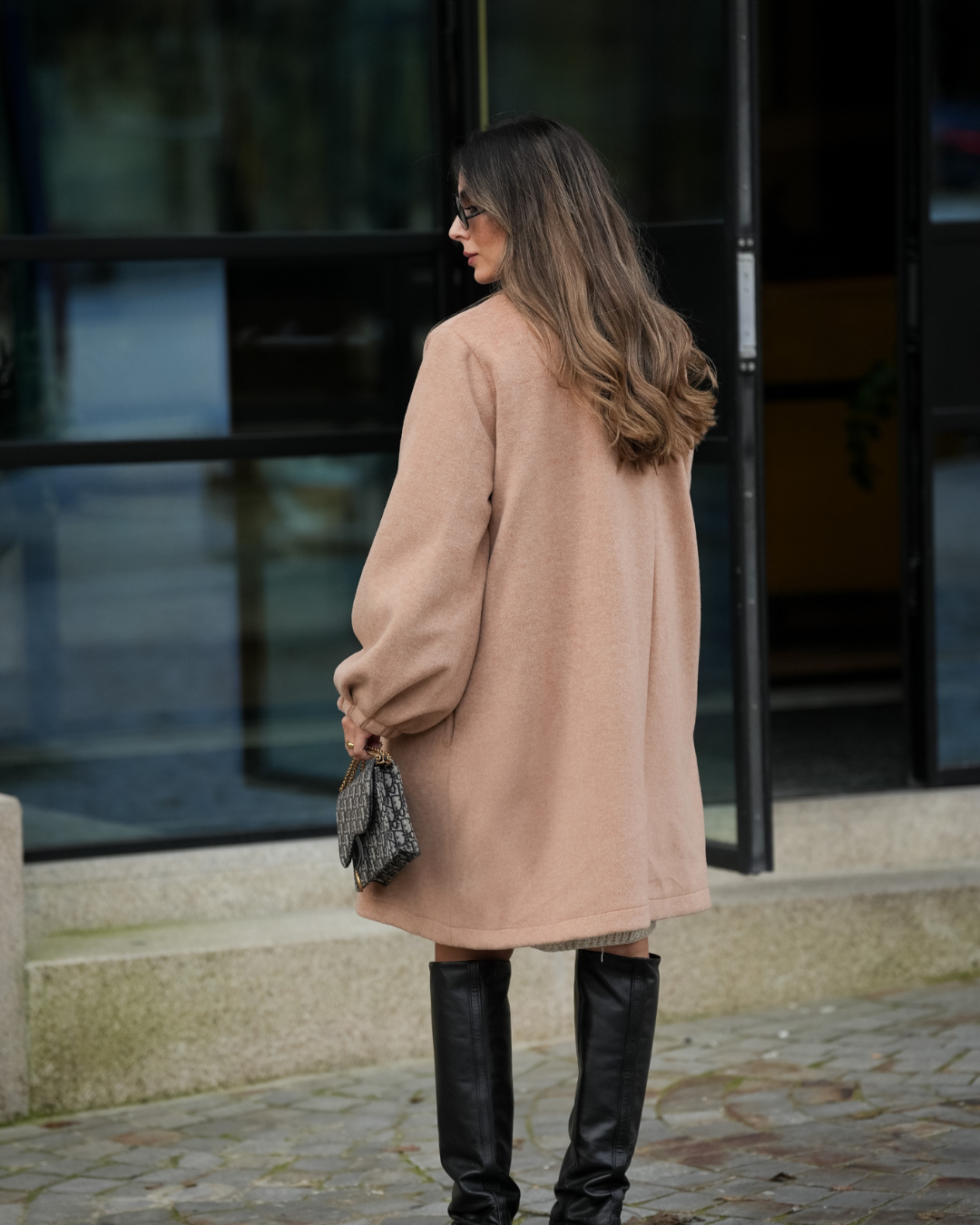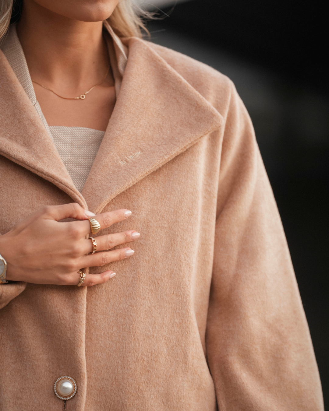 Be Unique Coat é O casaco que vai fazê-la sentir ainda mais única! Best-seller da t-sHEART desde 2021 volta numa nova edição com o forro em tecido acetinado bege sublimado com o logótipo. Botões jóia, em tecido premium, 4 metros num toque tão suave que a vai fazer sentir nas nuvens. Mangas abalonadas que permite vestir peças em malha, mangas abalonadas, e tudo o que quisermos sem nos sentirmos desconfortáveis. As mangas terminam em punho repleto de pregas. Com lapela no lado do virado tem o bordado Be Unique em linha lurex dourado. Com bolsos laterais na cintura.